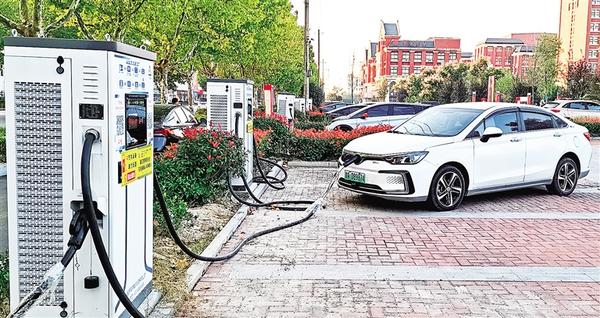11月2日,记者在郸城体育场东侧看到,这里新装的十多个充电桩为市民提供了便利。据悉,今年该县新装200多个充电桩,助力市民绿色出行。 记者 徐松 摄