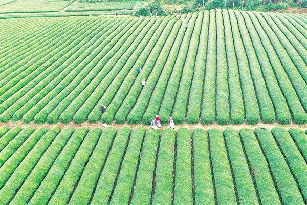 11月7日,在江西省抚州市金溪县华侨管理区枫山茶场,茶农给茶树施肥、除草(无人机照片)。立冬节气将至,全国各地农民抢抓农时,在田间地头开展农事活动。邓兴东 摄(新华社发)