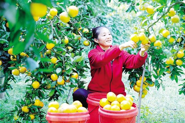 11月7日,在贵州省开阳县南龙乡土香村,果农在采摘蜜橘。