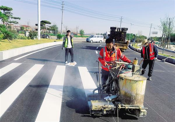 去年以来,西华对县城多条道路进行改造提升,扮靓城市“颜值”的同时,大大改善了群众出行环境。图为11月7日工人施画道路标线。记者 张猛 孙靖 摄