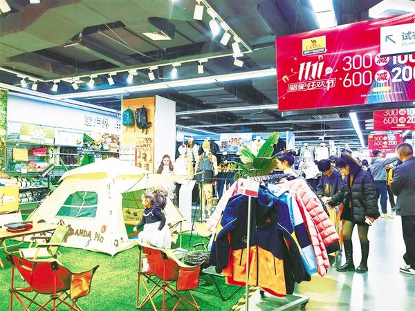 11月11日,寒冷的天气未能熄灭市民购物热情,周口中心城区文昌万达、万顺达、一峰、五一文化广场地下商场等大型商超内,各大品牌商家围绕“让利”“促销”各出奇招,亲民价格加上多种形态的体验式购物点燃市民消费热情。记者 姬慧洋 摄