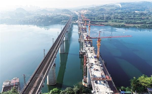 这是合龙后的湘桂铁路柳江双线特大桥(右)(10月15日摄,无人机照片)。广西今年深入实施向海通道建设行动,计划完成重大基础设施项目投资700亿元。交通运输格局的优化给向海经济发展提供了有力支持。