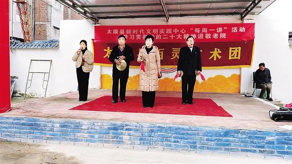 11月12日,县新时代文明实践中心组织文艺宣讲小纵队到逊母口镇敬老院开展“每周一讲”活动,以群众喜闻乐见的形式宣讲党的二十大精神。 记者 张洪涛 通讯员 刘芳亮 摄