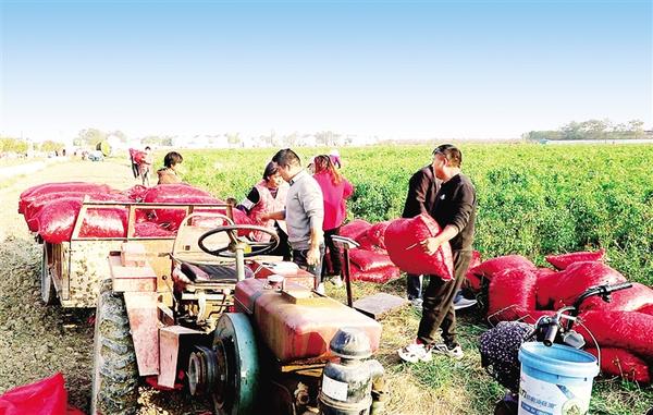 11月15日,记者在郸城县汲冢镇5G智慧辣椒产业园看到,这里的辣椒已进入采摘期,园区工作人员正在采摘、分拣、搬运辣椒,一派喜人的丰收景象。据了解,该镇辣椒种植面积超过1万亩,产量稳定在2500吨以上,各类辣椒产品产值1亿元以上。