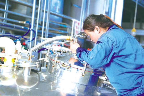 生物医药是我市重点发展的三大战略性新兴产业之一。近年来,市委、市政府高度重视生物医药产业发展,多措并举推动生物医药产业不断壮大,为全市经济高质量发展蓄势赋能。图为位于项城市的河南康达制药有限公司生产车间内,一名工人正在认真工作。记者 刘俊涛 摄