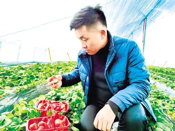 11月25日上午,在鹿邑县广源农牧专业合作社草莓园温室大棚里,一排排碧绿的草莓苗整齐划一,生机盎然,一名群众正在采摘草莓。近年来,鹿邑县杨湖口镇不断调整产业结构,积极找准产业发展的路子,大力发展水果、蒲公英茶等特色产业,全面推进乡村振兴。