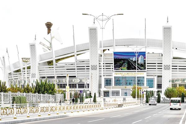 这是11月26日在土库曼斯坦首都阿什哈巴德拍摄的奥林匹克体育场。