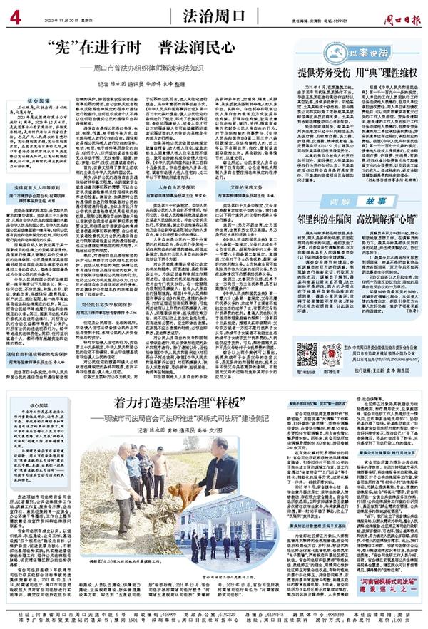 司法所工作是基层政法工作的重要组成部分。近年来,在市委、市政府的正确领导和河南省司法厅的具体指导下,周口市司法局坚持以人民为中心的发展思想,深入开展“枫桥式司法所”创建工作,并取得明显成效。