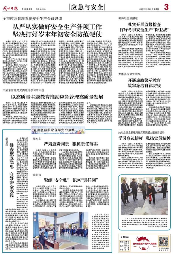 本报讯 (记者王凯 通讯员 田富生) 11月17日,全省、全市安全生产视频会议召开后,鹿邑县委、县政府高度重视,县委副书记、县长郭俊涛分别于11月18日、11月21日召开政府常务会议、重点工作推进会议,传达习近平总书记关于山西吕梁“11·16”重大火灾事故重要指示批示精神,分析研判全县安全生产工作特点,要求各乡镇、各部门深刻汲取近期省内外事故教训,全力开展冬季安全生产大检查,抓好岁末年初重点时段的安全生产防范工作。