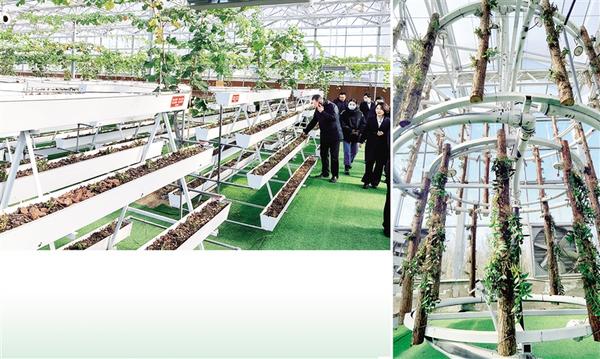 连日来,在太康县城郊乡石斛种植基地,慕名而来的游客络绎不绝。据悉,该基地是一个集现代科技农业种植、园林园艺、科普教育体验于一体的综合性场馆,目的是让前来参观的游客了解现代农业发展新模式。上图为游客认真观察石斛生长情况。右图为该基地推出的立体式树培石斛模式。记者 王映 摄