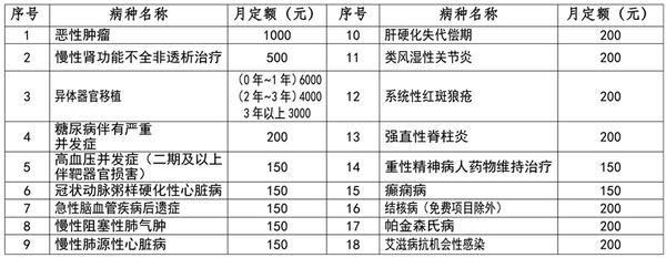 城乡居民门诊重症慢性病18个病种(详见表格)。