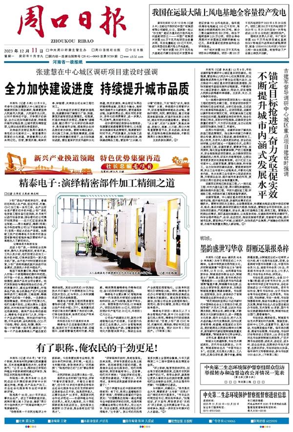 据介绍,精泰电子是川汇区第一家拿证即开工的项目。川汇区在项目建设过程中,积极推进首席服务官制度,做到政策上最优、服务上最好。在产业规划上,川汇区以创建国家级高新区为引领,按照市委、市政府提出的打造全国有影响的智能终端及零部件产业高地的发展目标,坚持“龙头带动、屏端联动、集群配套、链式延伸”,推动以工业富联、精泰电子为龙头的电子信息产业集群规模不断壮大、创新能力进一步增强、价值链水平持续提升。②6