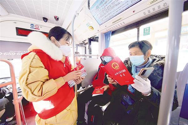 周口市普法办充分发挥公交车人员流动大、乘客关注度高的特点和优势,将中心城区公交车作为宣传载体,打造“宪法号”公交车。12月1日,周口市普法办工作人员走上公交车开展宪法宣传活动,将一本本普法书籍送到乘客手中。