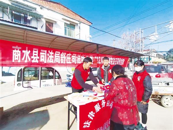 为弘扬宪法精神、传播法治理念、增强群众的宪法意识,12月4日,商水县司法局舒庄司法所积极开展国家宪法日宣传活动,在辖区主干道设置宣传台,向群众宣传相关法律法规知识,为群众提供法律咨询服务。记者 马治卫 通讯员 范有旺 摄