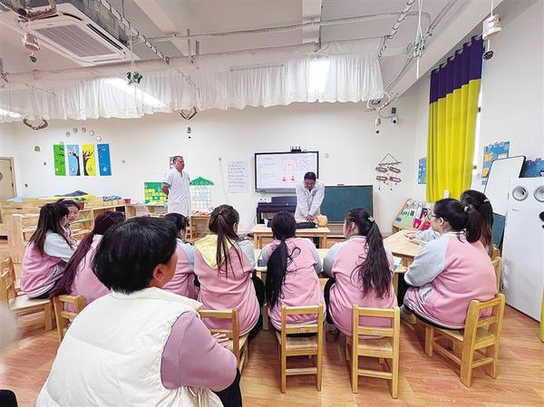 为切实保障幼儿的身心健康和生命安全,预防和减少幼儿意外伤害的发生,提升幼儿园教师对意外伤害的处理能力和急救能力,12月8日,周口骨科医院小儿骨科健康宣教小组走进临港开发区东成幼儿园,为幼儿园的工作人员进行安全知识和急救能力培训。 记者 史书杰 摄