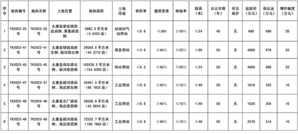 经太康县人民政府批准,太康县自然资源局决定以网上拍卖方式拟出让以下6(幅)地块的国有建设用地使用权,并委托周口市公共资源交易中心组织实施。现将有关事项公告如下: