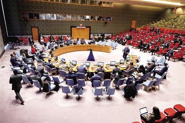 这是12月20日在位于纽约的联合国总部拍摄的联合国安理会会议现场。