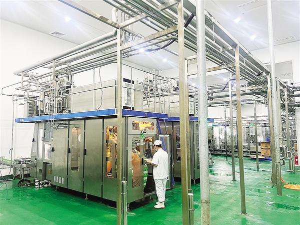 近年来,扶沟县以省级绿色种养循环试点县建设为抓手,以宝乐奶业、牧原生猪等乳品加工、畜牧养殖企业为龙头,大力发展现代畜牧业,走出了一条低碳循环、农牧结合、一二三产业融合发展的好路子。图为工人在宝乐奶业灌装车间操作设备。