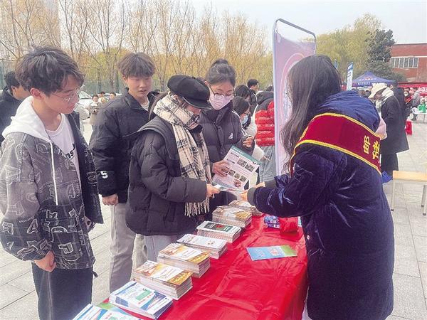 该行工作人员向大学生发放鼠标垫、抽纸等小礼品,引导他们提高金融知识水平、增强风险防控意识,提升宣传效果。(郭佳慧)