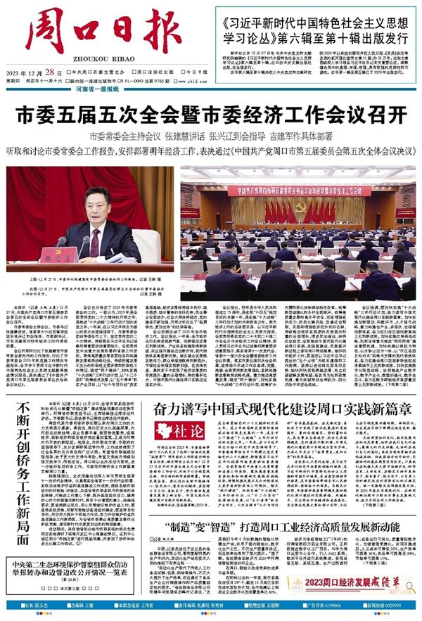 即将过去的2023年,市委团结带领千万人民交出了怎样一份经济发展“成绩单”?明年经济工作将谋划哪些重点任务、确定哪些主攻方向?12月27日召开的市委五届五次全会暨市委经济工作会议,对此予以全面客观总结,作出新的科学安排部署。审视发展答卷,要从过往成绩中提振信心、坚定决心;落实会议精神,要坚持立言立行、真抓实干,努力推动高质量发展再上新台阶、中国式现代化建设周口实践开创新局面。