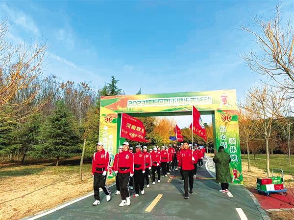 近日,淮阳区开展迎元旦职工健步走活动。此次活动共有70个企事业单位1200人参与,旨在弘扬中华体育精神、丰富群众文化生活。图为参加健步走的队伍陆续出发。