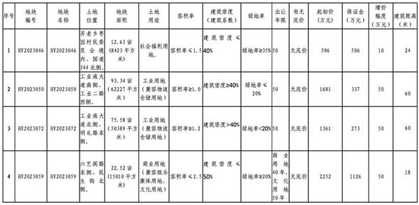 一、拍卖地块的基本情况和规划指标要求(详情见下表)