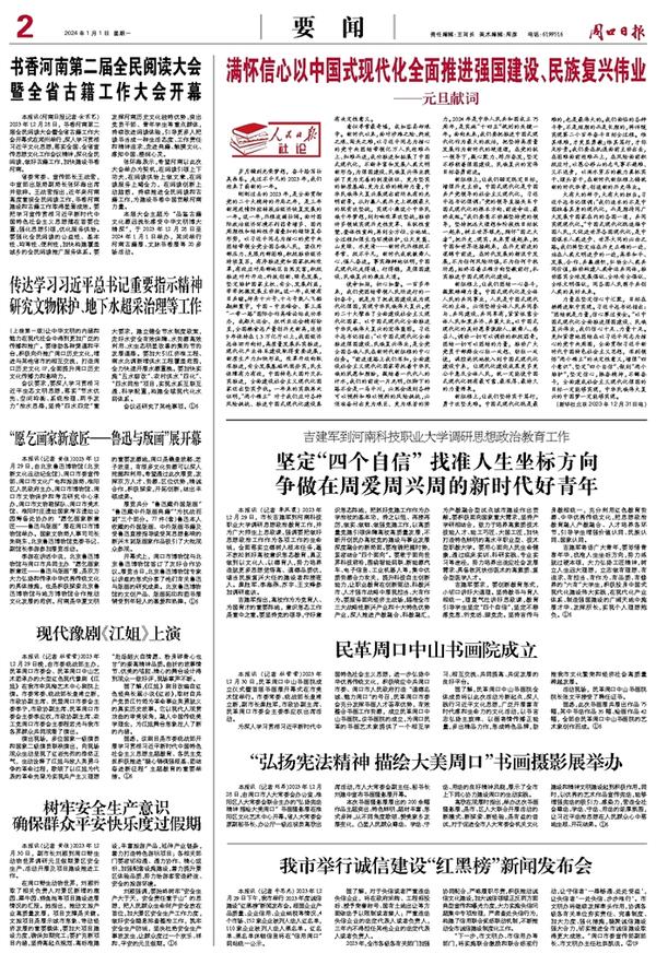 本报讯(记者 杜营营)2023年12月30日,民革周口中山书画院成立仪式暨首届书画展开幕式在市美术馆举行。市委常委、统战部长皇甫立新,副市长秦胜军,市政协副主席、民革周口市委会主委李应权出席活动。