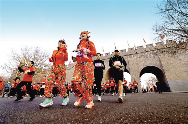 图③为 1月1日,跑步爱好者在河北正定古城参加元旦长跑比赛。