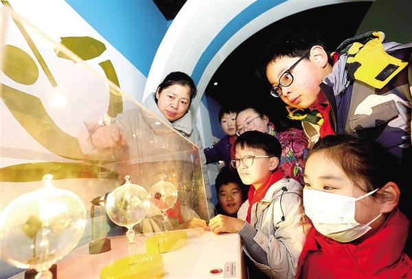图① 1月1日,在安徽省淮北市科技馆,孩子们在体验科普装置。