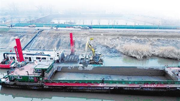 1月2日上午,一艘吹泥船正在中心城区的沙颍河挖泥装船,疏浚航道。据了解,沙颍河现有航道为四级,可供1000吨级以下船舶通行,航道提升为三级后,可供1000吨级以上船舶通行。记者 梁照曾 摄