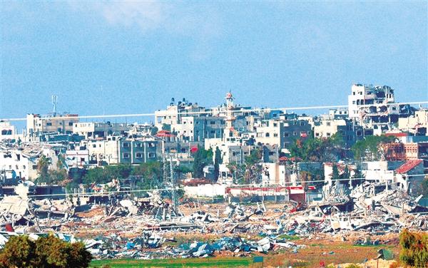 这是1月4日从加沙边境以色列一侧拍摄的加沙北部遭袭情况。 据加沙地带卫生部门3日通报,以军在加沙地带军事行动已导致超过2.2万名巴勒斯坦人死亡,超过5.7万人受伤。 吉尔·科恩·马根 摄 (新华社发)