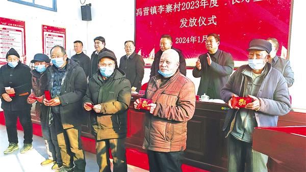 午饭后,沈丘县冯营镇李寨行政村村民陆续来到村委会院内。院内道路两侧的展板上,李寨行政村2023年“十件实事”和办结情况一目了然。道路尽头的会议室内座无虚席,李寨行政村党支部书记李士强笑容可掬地与老年人和群众代表齐聚一堂,他们要在这里举行2023年度“长寿基金”发放仪式,召开行政村2023年工作总结暨2024年项目建设会议。