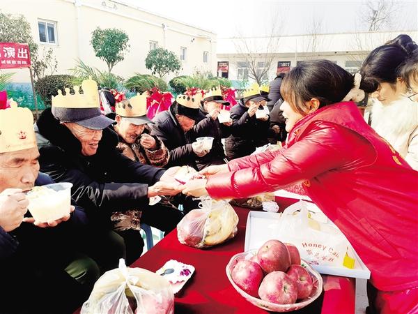 日前,邓城镇敬老院为近期过生日的老人精心举办集体生日会,并邀请县豫剧团的演员前来演出,让老人真切感受到了大家庭的温暖。图为过生日的老人开心吃蛋糕、长寿面。