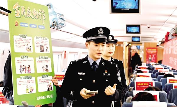 1月8日,合肥铁路公安处乘警支队民警在G8323次列车上和旅客进行反电诈知识互动问答。