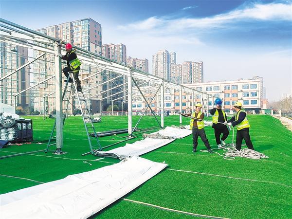 1月13日,“周口大集”展厅抓紧布置中。该展厅位于庆丰中路与新民中路交叉口西北角,以周口传统美食展、房展、车展、特色农产品展等为主,展现周口行业特色,满足市民一站式购物需求。记者 沈湛 摄