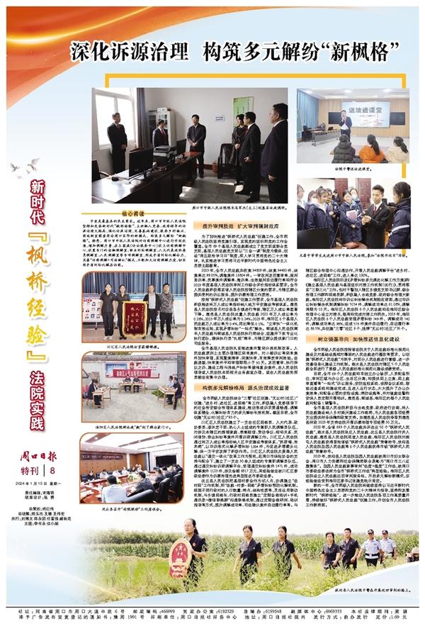 平安是最基本的民生需求。近年来,周口市中级人民法院坚持和发扬新时代“枫桥经验”,主动融入党委、政府领导的诉源治理大格局,强化诉源治理,完善基础建设,服务乡村振兴,因地制宜探索符合周口实际的新模式,构筑多元解纷“新枫格”。据悉,周口市中级人民法院对诉前调解中心进行升级改造,增加调解力量,在立案庭(诉讼服务中心)设立诉前调解中心,设置专门的金融调解室、物业纠纷调解室、人大代表政协委员调解室、人民调解室等专项调解室,形成矛盾纠纷化解合力,完善“诉前调解+司法确认”模式,不断加大诉前调解力度,切实将矛盾纠纷化解在诉前。