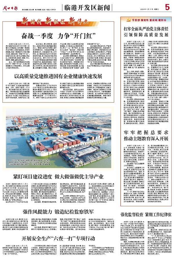 会议指出,主题教育工作开展以来,临港开发区党工委坚决贯彻落实中央、省委、市委关于主题教育部署要求,紧紧锚定目标任务,认真贯彻“五个更加注重”的重要要求,坚持把“理论学习、调查研究、推动发展、检视整改、建章立制”五项清单贯穿始终,深入推进“四下基层”,切实做到“三个实实在在”,推动主题教育深入开展。
