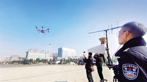1月10日上午,西华县公安局举行一系列活动,热烈庆祝第四个中国人民警察节。图为民警展示警用无人机。记者 张猛 孙靖 摄