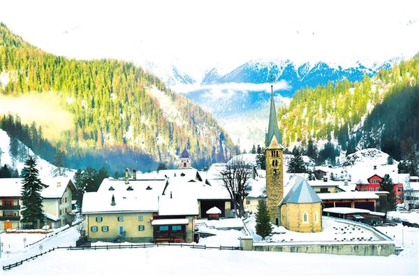 这是1月18日在瑞士东部圣莫里茨通往达沃斯的火车上拍摄的窗外雪景。