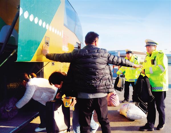 1月22日,周口高速交警李文浩、辅警贺磊在宁洛高速商水县谭庄服务区转运返乡务工人员。连日来,市公安局高速交警支队拓展服务领域,备战即将到来的春运,在环周高速的服务区设立“爱心驿站”,为返乡群众欢度新春佳节、安全顺畅出行创造良好道路交通环境。 记者 任富强 通讯员 郭利军 摄