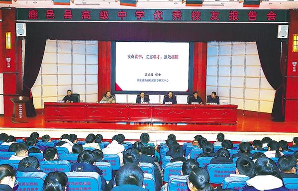 1月21日,鹿邑县高级中学1987届优秀毕业生姜天俊博士、1994届优秀毕业生王贵东博士荣归母校,为学弟学妹作励志报告,希望学弟学妹坚守理想信念、明确学习目标,在提高学习成绩的同时,做到德、智、体、美、劳全面发展,早日成为国家栋梁之才。