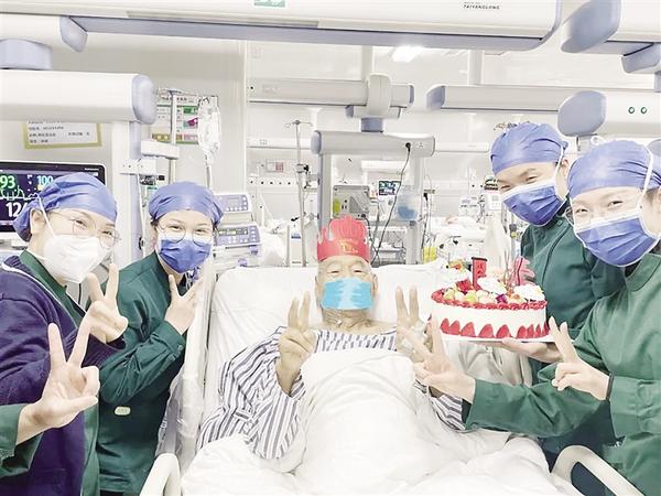 “这是我最难忘的一个生日。”刘老先生拿着蛋糕,激动地对陪他一起过生日的医护人员说。
