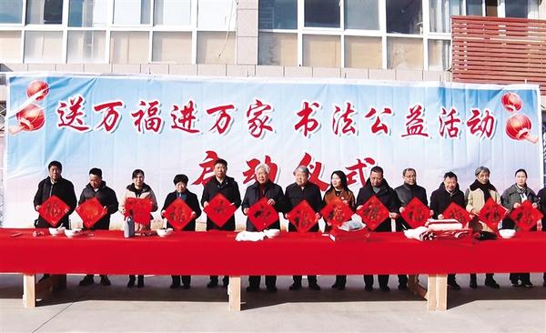 1月25日,由项城市民政局、项城市丛碧之光书画艺术院等单位联合主办的“送万福进万家”书法公益活动启动。活动现场,书法爱好者现场挥毫泼墨,不一会儿,一张张大红的“福”字便呈现在群众面前,浓浓新春气息扑面而来。 记者 张志新 通讯员 王亮亮 摄