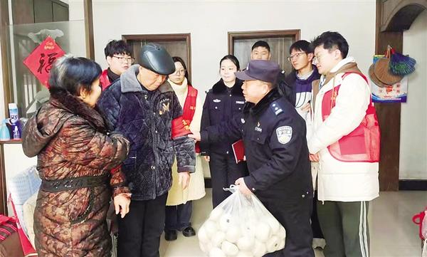 “这是我定做的年馍,送给你们,希望你们平平安安、快快乐乐,过个幸福祥和的新年。”1月30日,临近春节,项城市花园街道袁桥社区警务室民警丁高岭购买年馍,送给赵秀英等10多位长期戴着“治安巡逻”红袖章的老年志愿者,感谢他们为社区平安建设付出的辛勤努力。记者 张志新 摄