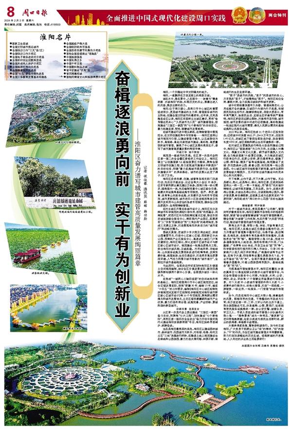 大潮奔涌逐浪高,蓄势扬帆破浪行。如今的古城淮阳,广大党员干部群众正以“闯”的精神、“创”的劲头、“干”的作风,为全区城市建设管理水平再攀新高,努力打造加速崛起的历史名城、临港新城的开放高地、人人向往的兴业热土而奋勇前行!