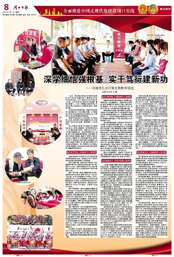 深入开展学习贯彻习近平新时代中国特色社会主义思想主题教育,是贯彻落实党的二十大精神的重大举措。项城市自2023年9月开展主题教育以来,坚决贯彻落实中央、省委、周口市委主题教育部署要求,紧紧围绕“学思想、强党性、重实践、建新功”总要求,锚定目标任务,认真贯彻“五个更加注重”要求,坚持在理论学习、调查研究、推动发展、检视整改上见深度、见温度、见厚度、见力度,着力将理论学习与实践运用相结合,用心用情用力为人民群众办实事、解难题,以实实在在的成效让群众感受到主题教育带来的变化。