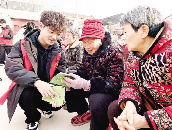 近日,商水县东城街道团工委组织开展大学生“返家乡”社会实践活动,为青年学子搭建奉献社会、服务家乡的平台。图为大学生志愿者为老年人发放健康知识手册。记者 马治卫 通讯员 孙乐乐 摄