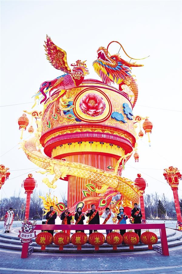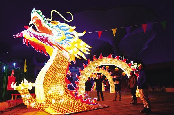 图③2月7日,宁夏银川市举行“百名劳模赏花灯、迎新春”活动,劳动模范代表在银川市金凤区阅海湾水上公园点亮龙年花灯。新华社记者 王鹏 摄 ③ 图②2月7日,人们在山东省临沂市郯城县郯国古城景区观赏花灯。 张春雷 摄 (新华社发)