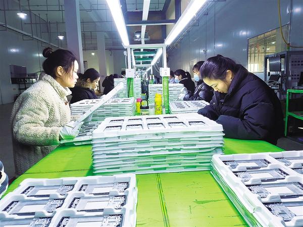 2月18日,精泰智能终端(周口)产业园内员工忙碌在一线。该项目主要业务包括手机、平板、PC及智能穿戴装置等电子产品关键零组件的生产、研发及销售,能够带动6000人到1万人就业。记者 沈湛 摄