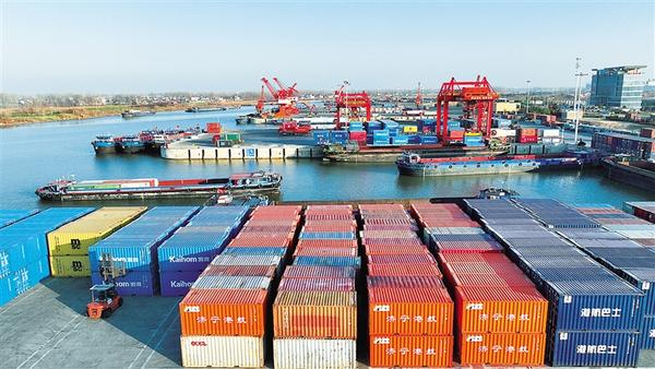 今年1月份,周口港中心港作业区集装箱吞吐量完成9032标箱。春节期间,中心港作业区各航线正常运营,为实现全年15万标箱目标任务打下坚实基础。 记者 宋风 摄